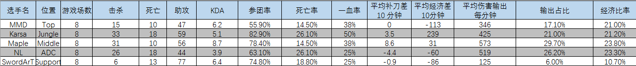 首先我们先来看下闪电狼在LMS季后赛上的数据: