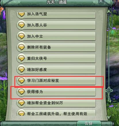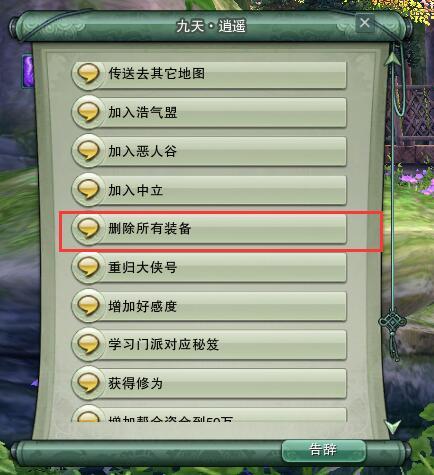右键点开出现一个清单,有以下这些选项,功能如字。这些功能和自身属性及装备有关的物品都是不能离开稻香村使用的,切记。