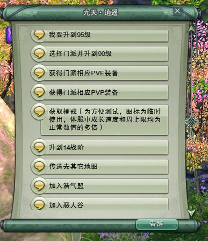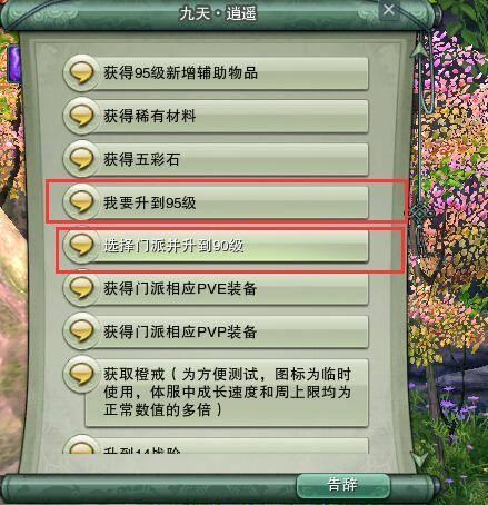 然后我们可以选择升到95级或者选择门派升到90级,直接升到95会是大侠号的身份。这里我先选择升到95级。