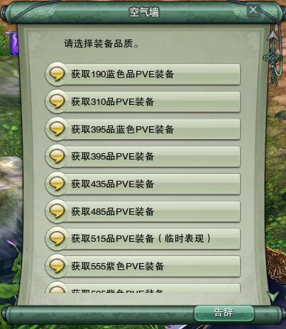 这里小编选择的中立,获取了PVE装备。装备从190品到980品依次排列,点击获取,将会撑满你整个包包。