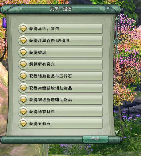 2级以后,不要埋头做任务也不要急着离开稻香村,还有许多事情我们再在此地完成,打开你的背包,有一个叫九天逍遥的东西,没错,剑网3大好物就是他了!测试服量身定做。