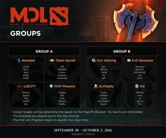 MDL主办方在昨天公布了MDL线下赛的分组情况,A组NB、秘密、LFY、MVP,大家比较期待的是MVP与秘密这两支战队的交手,毕竟两个队伍的主力都是韩国选手大家也都是曾经的队友。B组方面VG、EG、IG.V、OG四支队伍新的OG与EG都较为受人关注,这次MDL也是他们重组后参与的的首个国际性赛事。