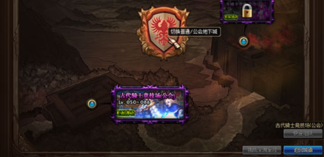3.地下城类别分为普通地下城与公会地下城,点击选择界面处的公会地下城按钮即可切换为公会地下城界面