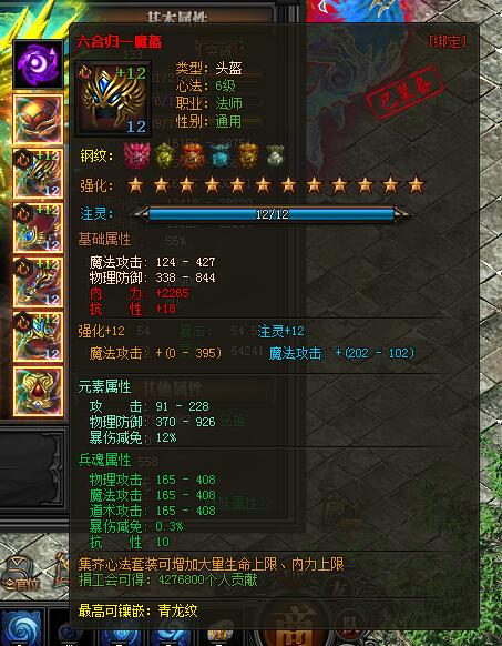 强化+12——魔法攻击:+(0-395),注灵+12——魔法攻击:+(202-102)。