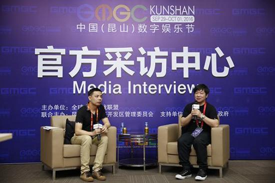 2016年9月29日-10月1日,由昆山市人民政府支持,全球移动游戏联盟(GMGC)主办,昆山花桥经济开发区管委会联合主办的中国(昆山)数字娱乐节(简称:GMGC昆山)在昆山花桥国际博览中心盛大举行。此次大会以“天下为娱,昆山有戏”为主题,秉承“不忘初心,忠于玩家”的核心理念,来自全球10多个国家或地区,超过100家参展商,近百位游戏产业大咖,约30000人次观众齐聚一堂,从广大玩家和用户的视角来探索移动游戏及泛娱乐产业未来的创新发展。“喜羊羊与灰太狼”之父黄伟明接受媒体采访: