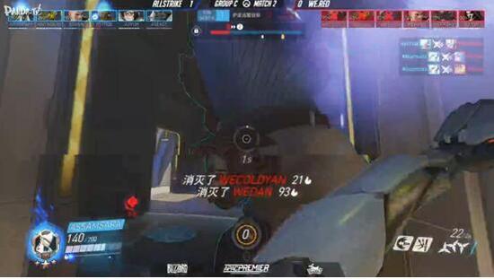 第一回合双方攻防互换。进攻方WE选择了安娜、大锤、死神、毛妹、路霸和卢西奥。防守方AS选择了死神、安娜、小美、禅雅塔、毛妹和大锤。AS这边小美是输出很猛,接连冻住两波进攻,有效配合队友拖延了时间。而后WE死神绕后开大,安娜将纳米激素给大锤,最终是占下A点。然而AS这边小美是在太厉害,不但能配合队友,也能自己输出,一连几波大招都十分有效。而在时间快要结束时,AS这边大锤一个裂地猛击,最终AS是成功守住B点,也取得了第一场的胜利。