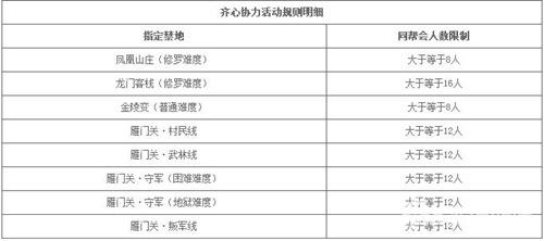 指定挑战禁地名单,及同帮会人数限制明细如下: