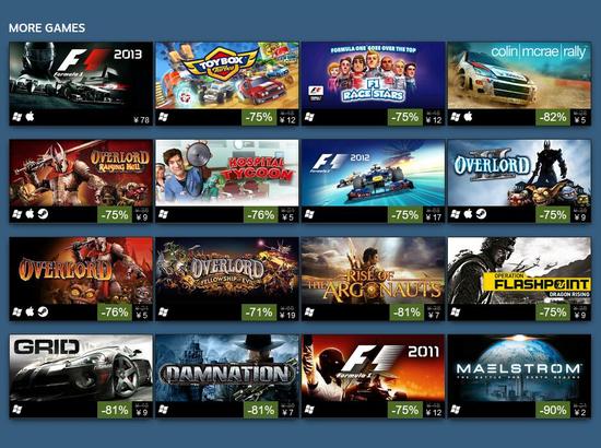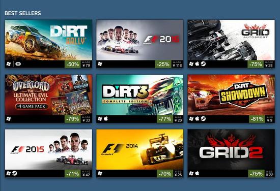 继上周STEAM发行商特惠华纳专场之后,本周迎来了以赛车游戏见长的CodeMasters特卖活动,这一次自然少不了大量的赛车游戏特价甩卖,因此喜欢赛车游戏的玩家有福咯!