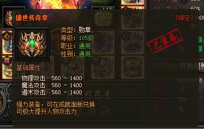 盛世传奇章。类型:勋章,等级:105级,职业:通用,性别:通用。