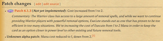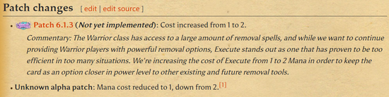 斩杀:曾今的战士的斩杀就是2费变1费,然后又改回2费。