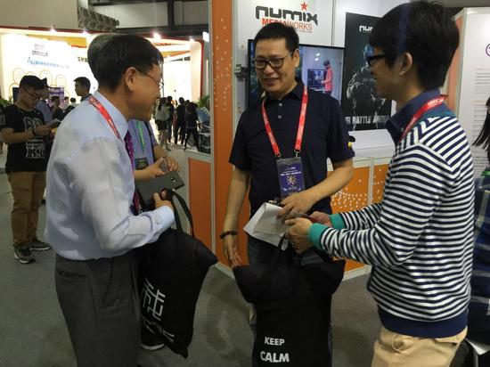 随后,全球移动游戏联盟(GMGC)创始人兼秘书长宋炜先生陪同全罗南道信息文化产业振兴院一行嘉宾共同参观展会现场,领略数字娱乐无穷魅力。