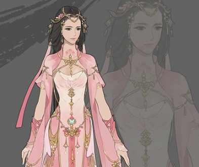 七秀:又见到扇子元素,正太和萝莉的头饰好评。秀姐好身材回归,晚礼服款新造型有种公主的华贵感,非常典雅,亮点在锁骨中间的花瓣,不知道实装效果怎么样。
