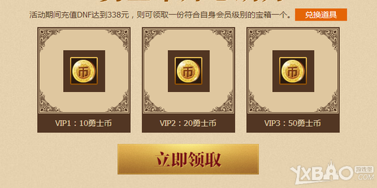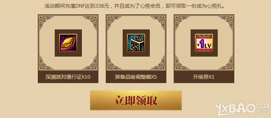 活动期间充值DNF达到338元,则可领取一份符合自身会员级别的宝箱一个。