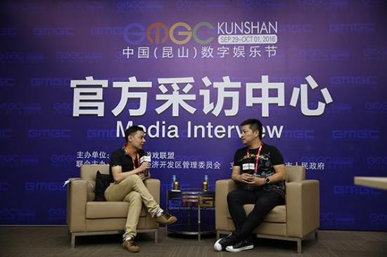 2016年9月29日-10月1日,由昆山市人民政府支持,全球移动游戏联盟(GMGC)主办,昆山花桥经济开发区管委会联合主办的中国(昆山)数字娱乐节(简称:GMGC昆山)在昆山花桥国际博览中心盛大举行。此次大会以“天下为娱,昆山有戏”为主题,秉承“不忘初心,忠于玩家”的核心理念,来自全球10多个国家或地区,超过100家参展商,近百位游戏产业大咖,约30000人次观众齐聚一堂,从广大玩家和用户的视角来探索移动游戏及泛娱乐产业未来的创新发展。蜗牛游戏总裁孙大虎接受媒体采访:
