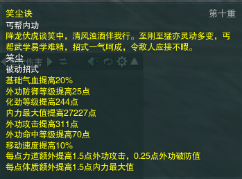 6、天外飞龙:丐帮顶尖黑科技,原理就是在对方用锁足技能接近你四尺的时候拍亢龙,亢龙、龙啸和蜀犬无动画但有伤害还可以续DOT,瞬间爆发极高,但这个招数实战中成功率较低,一旦施展失败就会落于下风。