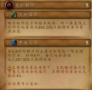 大地猛击尽量不要被击飞不必赘述,重点是第二个技能梦魇之怒,连续快速的高伤害并且叠加增伤,预留两个炖鸡,打上神器减伤效果,正好覆盖梦魇之怒,在自己半血之后用守护者之手给自己奶一口,总体压力来说H模式下并不算大