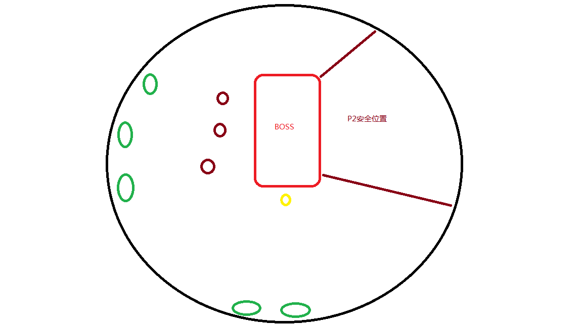 进入P2,中圈远离,如果DPS够暴力,直接YY一波撸死,如果DPS不足以一波,可以考虑内场不开YY,留到P2处理小怪使用,两个循环击杀。第二次内场时间比第一次时间长,再怎么也足够击杀BOSS的。