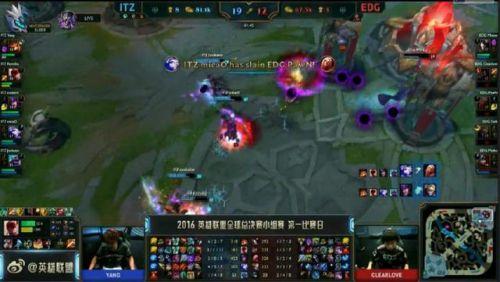 游戏中期,ITZ利用小幅的优势,盲僧再度GANK上路击杀刀妹之后推掉EDG上路所有外塔。EDG因为外塔的缺失,视野丢失的情况下,反复被ITZ蹲到,人头比9:6,三路外塔全部被推仅剩一座中路二塔。
