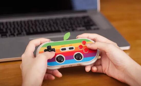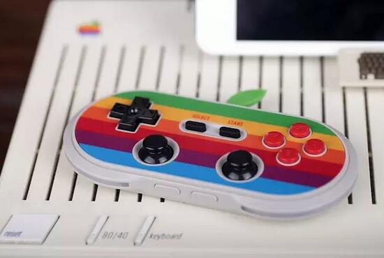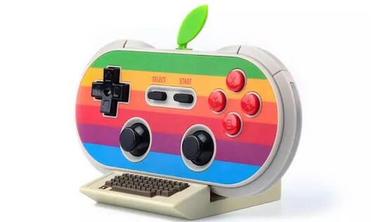 为了纪念苹果公司成立40周年,专营电子游戏周边的香港品牌八位堂将它擅长的复古风格与对苹果的敬意结合在了一起,研发了一款苹果纪念版蓝牙手柄 AP40。
