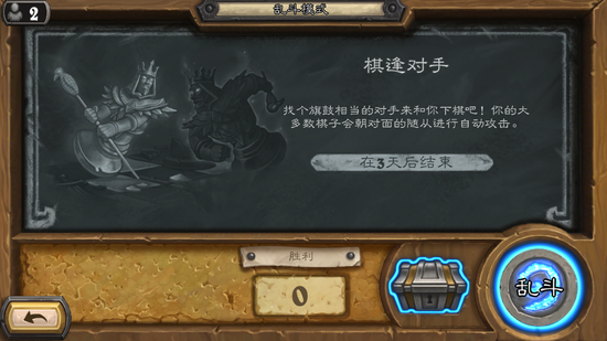 卡拉赞之夜给大家印象最深的关卡象棋关现已加入炉石乱斗豪华午餐,本周乱斗不用组牌,不能完成职业任务,每位玩家15张牌,见技术的乱斗来了。另外别忘记乱斗也可以约战好友,下盘棋再说。