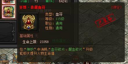 至尊·真龙血符。类型:血符。等级:115级,职业:通用,性别:通用。
