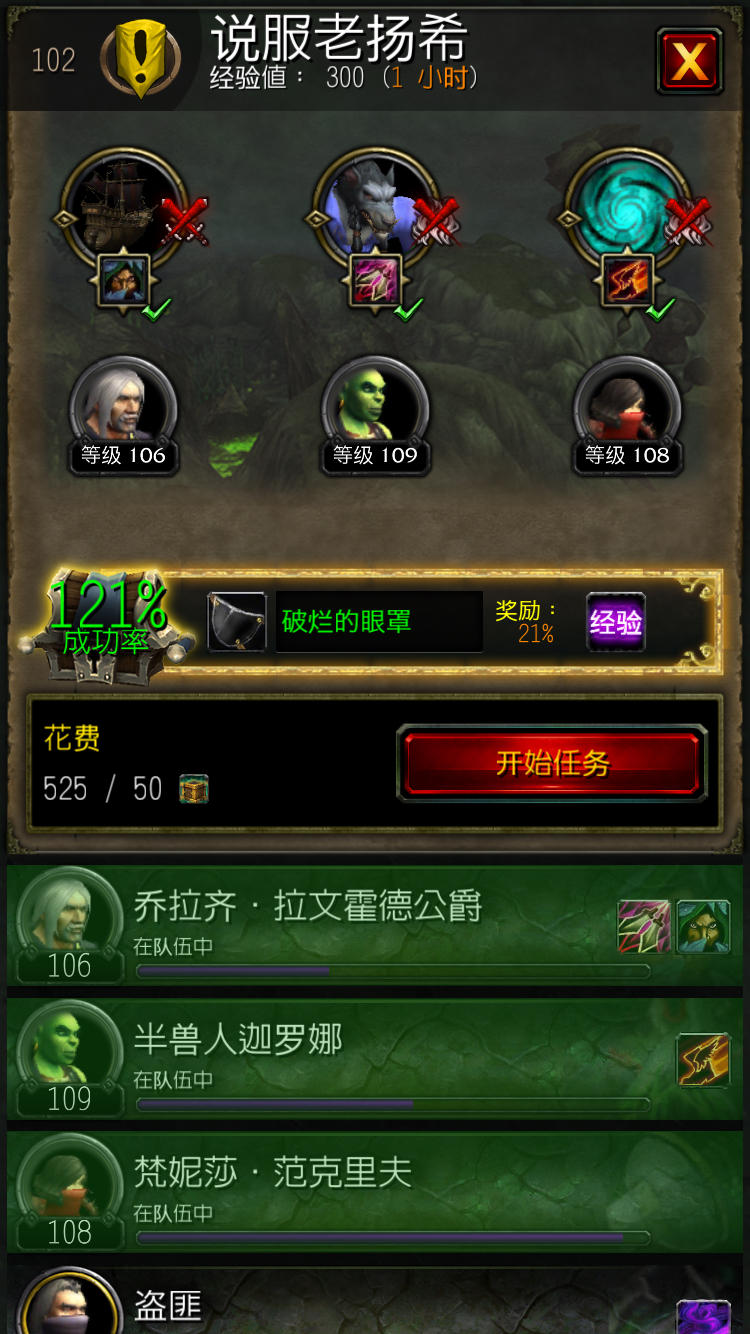 如图,盗贼小号,到103级接的职责任务,可以无限做,不要交任务就行,一小时做一次,50的资源就够了……