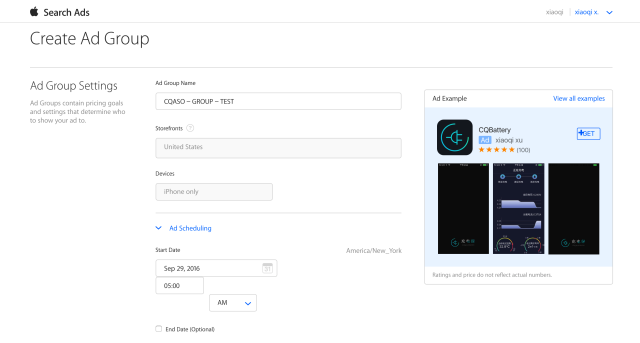 (9)[Create Ad Group] 创建广告群体,筛选符合目标价格,目标时间的广告群体。