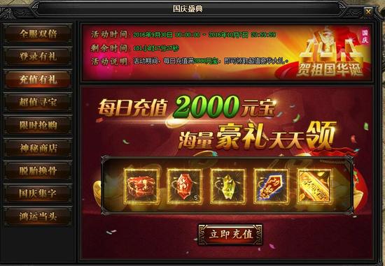每日充值2000元宝,海量豪礼天天领。