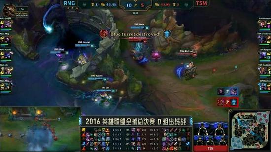 36分钟带着大龙BUFF的RNG再次进攻中路,拆掉防御塔后直接开团,EZ侧翼击杀杰斯,随后斩杀布隆以及卢锡安,TSM溃不成军!之后瑞兹也被同时击杀,EZ拿到四杀后团灭对手获得胜利,惊险晋级八强!!