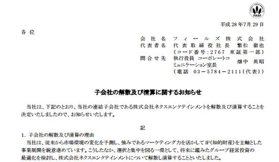 日本游戏开发商NEXENT于10月7日在“官报”上发布解散公告,正式宣布这家已经成立了24年的游戏开发商的谢幕。事实上,早在今年的7月15日,其母公司fields就已经在董事会上提出将NEXENT解散并清算的决议。母公司fields表示,为了进一步集中资源发挥公司在IP方面的影响力,对集团经营模式进行游戏,故此对旗下部分子公司进行解散。