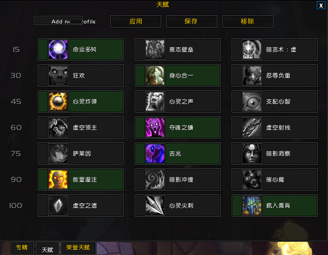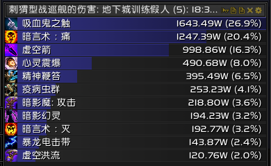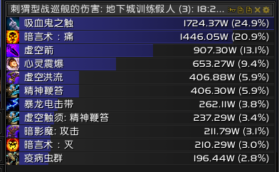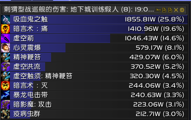 虚空爆发完+虚空洪流+消散。对于消散目前版本已经不会叠加层数,但是他会减少第二次和第三次虚空洪流到来的时间,这个对于你能不能用出第三次虚空洪流很重要。前面的手法就是2段鞭子+心爆+虚空箭循环,没有心爆用鞭子或者灭填充,不会有任何影响,保守一些可以留一层灭救急。到达第二次虚空洪流以后灭的使用间隙应该保持在3次虚空箭以上再用,当然这也不是绝对的,在85层数左右开出灌注,85以后基本上就是鞭子+虚空箭,用灭救急,因为我用的是TMW监视层数,所以看不到100层以后的时间,我是用虚空洪流的CD时间来开启消散,基本上虚空洪流CD10秒就可以开消散,然后用灭暗影箭度过这4秒,接着第三次洪流。剩下的就靠自己个人反应了。因为服务器的关系没有属性好的项链,不然吃一次项链或许能多活几秒。