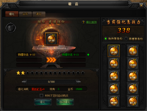 主要强化了角色和英雄的装备部位,可以永久性地增加属性。