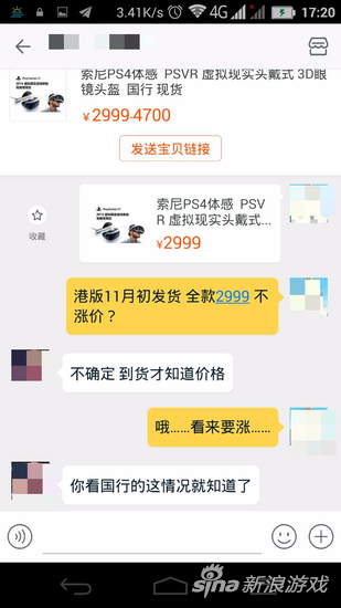 PlayStation官方旗舰店:下架究竟是什么原因让国行PSVR如此紧俏?当初说好的2999呢?笔者与一些淘宝店主交流后得知,原来他们在进货时的成本就已经涨起来了,进货价格高所以全国的PSVR都涨价!并且即使是涨价你也无法第一时间拿到机器。