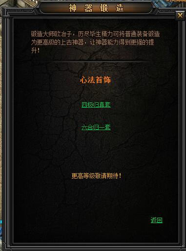 我们今天点击第三项。目前新版本只开放了四极归真套和六合归一套。其他的更高等级还敬请期待!