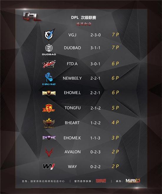 由国家体育总局体育信息中心主办,完美世界为官方合作伙伴,耀宇传媒承办的官方单项电竞大型职业联赛中国DOTA2职业联赛(DOTA2 Professional League,以下简称DPL)本周次级联赛的比赛可谓是好戏连台。随着队伍磨合的效果越来越好,选手们也从休赛期逐渐回归状态,面对着联赛中的升降级制度所带来的压力,不少队伍的状态逐渐进入佳境。目前DPL次级联赛积分榜排名前三的分别为并列第一的VG.J和多宝战队以及FTD.A战队。