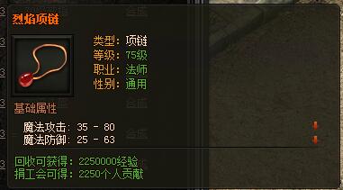 烈焰项链。类型:项链。等级:75级。职业:法师。性别:通用。