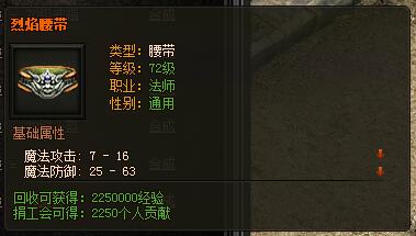 回收可获得:2250000经验,捐工会可得:2250个人贡献。