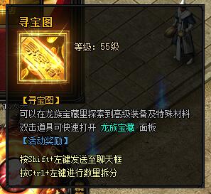 寻宝图。可以在龙族宝藏里探索到高级装备及特殊材料。双击道具可快速打开龙族宝藏面板。