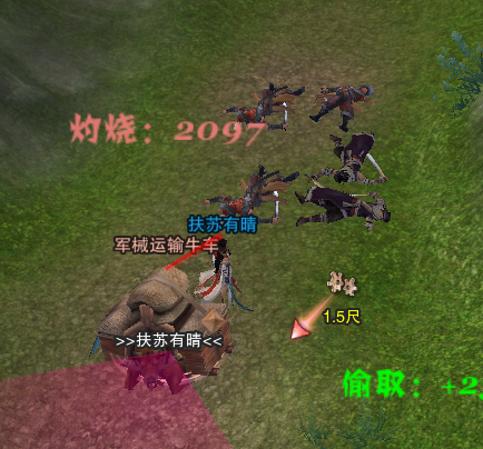 共两个,一个是让我们军械运输牛车,一个是顺带着打死牛车旁边的小怪以此来获得精灵兵器。我们只要在图示红线的这条路上找到霸刀风雷刀谷的叛徒弟子和狼牙士兵以及他们保护的牛车打掉即可: