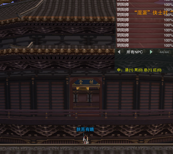 所以我们完成这个任务要先用大轻功飞到明堂的顶上,然后在靠近明堂西侧的地方慢慢滑下去可以看到策划在设计明堂的时候在西侧二楼给我们开了个门,我们只要滑下去然后聂云就进去了。