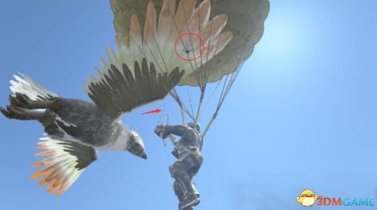 然后快速做:按E下鹰→按J让老鹰跟随→打开降落伞→用你的装着爪钩的弩射老鹰→按U停止跟随。