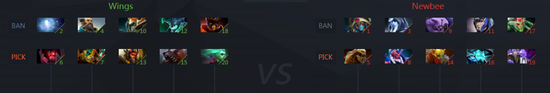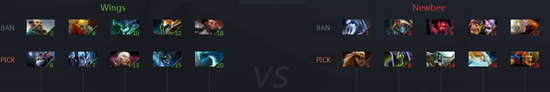甲板赛决赛最后一局,双方都异常谨慎,Newbee选出了小娜迦,而Wings选择了水人。比赛初期,Wings依靠双酱油的控制和爆发,配合天火多次进行Gank。虽然人头领先,但Newbee Sccc小娜迦的辉耀进度并没有受到太大影响。关键的一波,Wings全队5人开雾在野外商店抓到了小娜迦,在被击杀的一瞬间,小娜迦及时买到了圣者遗物,没有让辉耀出炉的时间拖后太久。