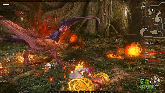 不过这次的奇烈模式大怪鸟,实力可以说是相当不俗,不愧为羊库库老师,奇烈模式有几只怪物将自身具有的异常状态特性进行了极大的强化,而大怪鸟就是其中之一。例如经典的三个方向吐火球,不仅火球的范围更大了,而且如果吐过的地方有草的话,就会像狩猎雌火龙的时候那样,草会被燃烧起来。造成地形的限制。