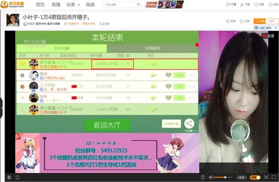 瞎玩不如多看多学习,借鉴点别人的经验肯能找到套路呢?我们不如来看看虎牙直播《球球大作战》专区的主播们是怎么单人上分的吧!这位叫做小叶子的美女是虎牙直播名副其实的球球大神,凭借娇嗔卖萌的个性以及女汉子的游戏技术虏获无数男玩家的芳心,纷纷抱小叶子大腿,拜师求艺,想和小叶子一起装逼一起飞。名师出高徒,经过小叶子严格教学之后,众位徒弟便和叶子踏上了球球直播这条罗马之路。