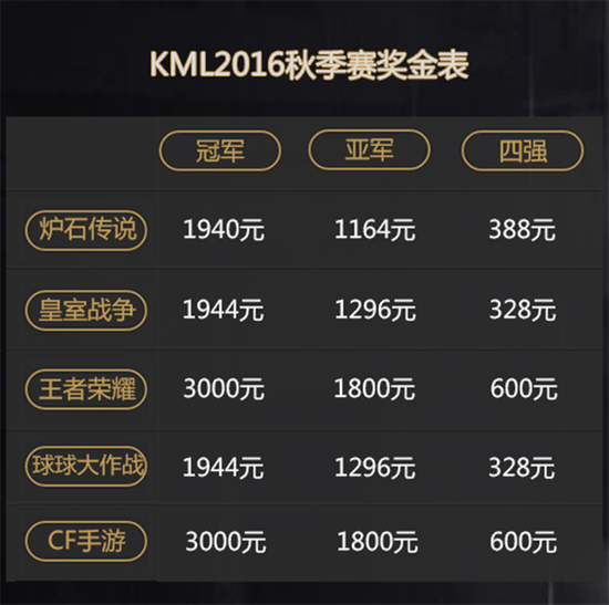 10月18日KML2016秋季赛正式落下帷幕,经过决赛周的激烈比拼《炉石传说》南区“痕悸”、《穿越火线:枪战王者》南区“URS”、《王者荣耀》南区“明星战队”、《皇室战争》南区 “叫我久宝宝”及《球球大作战》北区“郭大旺”登上KML的总冠军宝座。