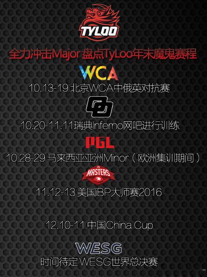 随着TyLoo的签证问题正式解决,小伙子们也即将踏上出国拉练的行程当中,下面小编来为大家整理一下TyLoo从现在起到年底的比赛以及训练计划。