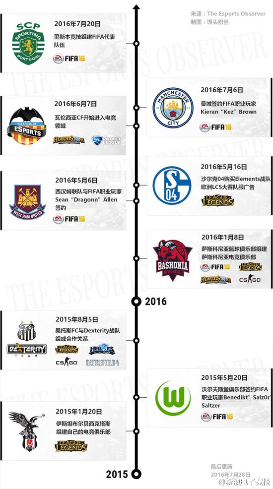 传统体育行业对电竞的涉猎始于2014年,近两年则越来越风生水起,德国沃尔夫斯堡、英国西汉姆联队、曼城、西班牙里斯本竞技先后收购电竞战队;今年8月底,凯尔特人前锋约纳斯·杰雷布科从著名LOL解说Monte Cristo手中买下了Renegades战队;9月底,费城76人收购Dignitas和Apex两支电竞战队,成为北美四大职业体育联盟中第一家收购职业电竞战队的俱乐部;一天后,知名职业电竞战队TeamLiquid也被传统体育界名人组成的财团所收购;这些传统俱乐部掀起的新一波投资热潮证明他们已经无法忽视新兴的电竞产业。美国8000万篮球观众中有960万同样也看电竞比赛,随着奥尼尔等篮球明星纷纷投入电竞产业,未来或许有更多篮球观众转化为电竞粉丝,这一趋势也让传统体育俱乐部加快了进入电竞行业的步伐。