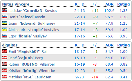 下半场Na‘Vi赢下手枪局,但是dignitas成功埋下C4,第三局购买了AK后也攻下了关键的一分,之后的比赛Na’Vi也无心恋战只守了一分,dignitas以16-6的比分轻松取得第一场比赛的胜利。