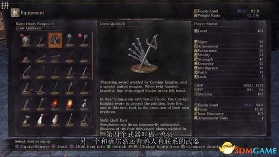 5、鸦羽鸦人骑士挥舞的扭曲的剑,一个特别的成对武器。当双手装备时,左手可以挥出4把薄边剑