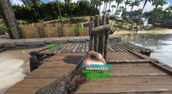 在船帆的地方(这里隐藏了船帆,有个洞),先垂直放一个木质栅栏地基。(其实别的地方也行,但是为了不浪费更多木质地基,推荐大家就放这里的好,垂直放,不要放歪了)